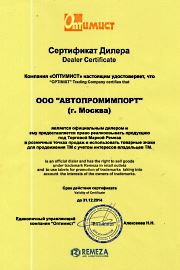 Компания «АвтоПромИмпорт» имеет множество сертификатов (сертификат официального дистрибьютора: Сибек, Trommelberg, NORDBERG AUTOMOTIVE, KING TONY, KraftWell, Brain Bee, HAWEKA, МАСТАК, JOHN BEAN, Autostapel, Portotecnica, Hunter, ATIS, Apac, ЧЗАО, «АЕ&Т», Hofmann, TECO, OMA Garage Equipment, "Станкоимпорт", "Hans", "REMEZA", "FIAC", "GAV", "SUMAKE", "ProfHelper" и др.), свидетельствующих о высоком уровне доверия производителей.